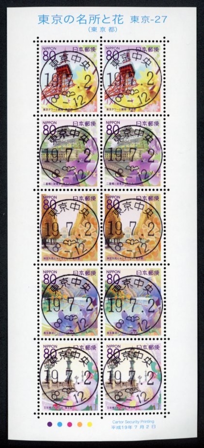 B70 【初日印】ふるさと 东京の名所と花[东京中央/19.7.2]