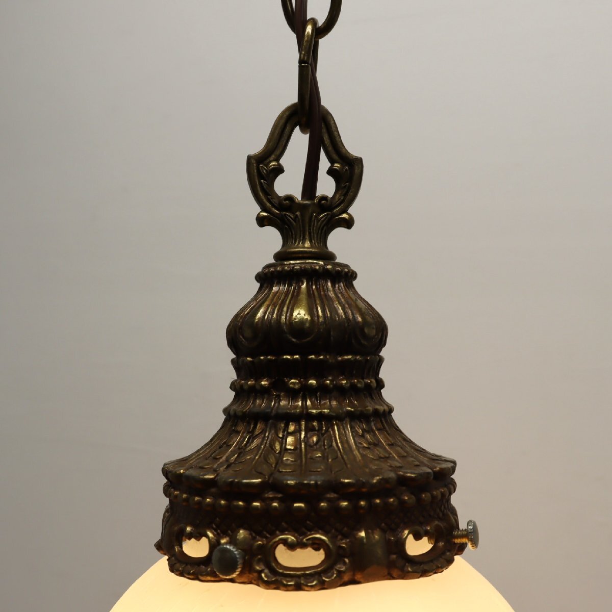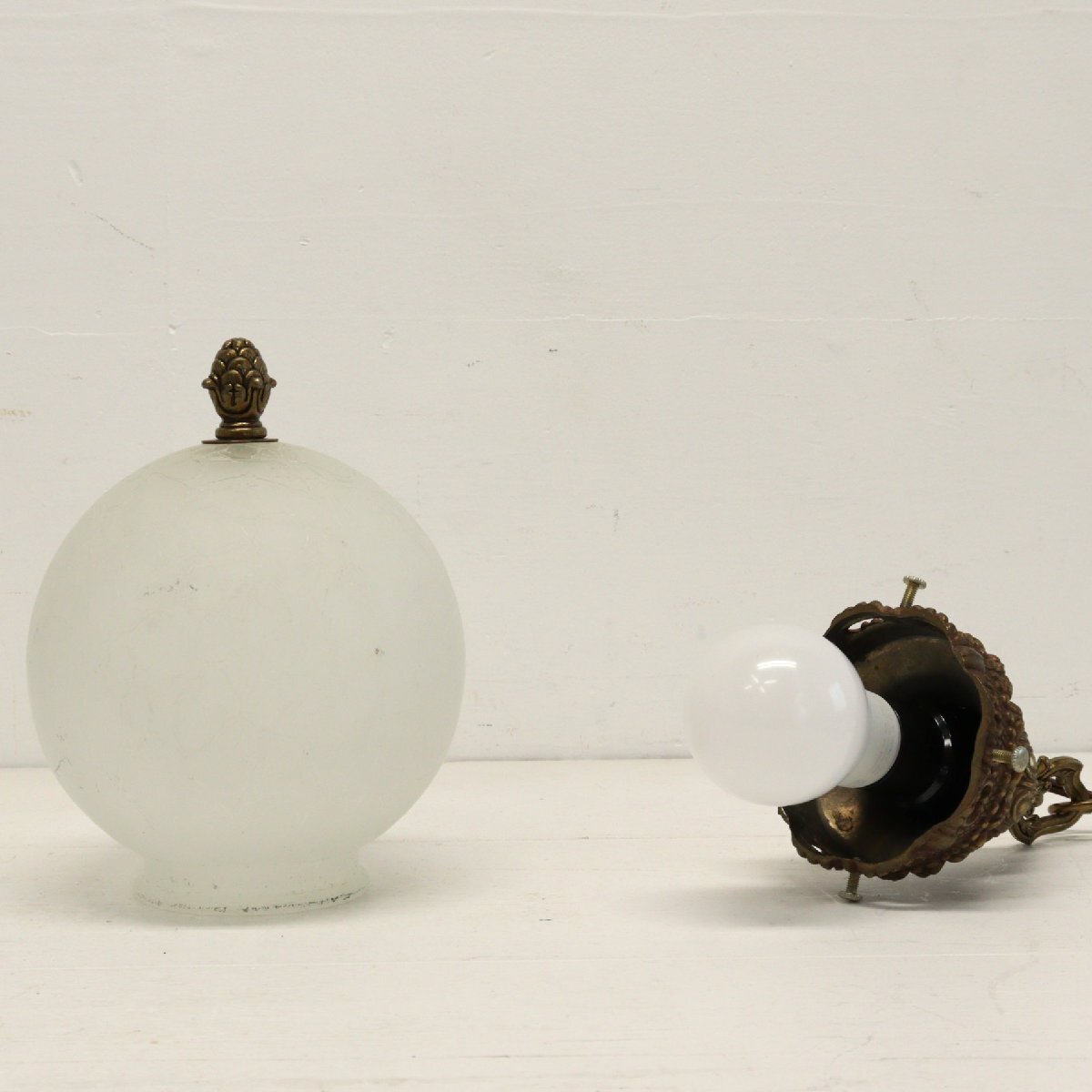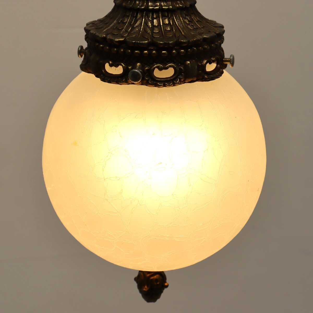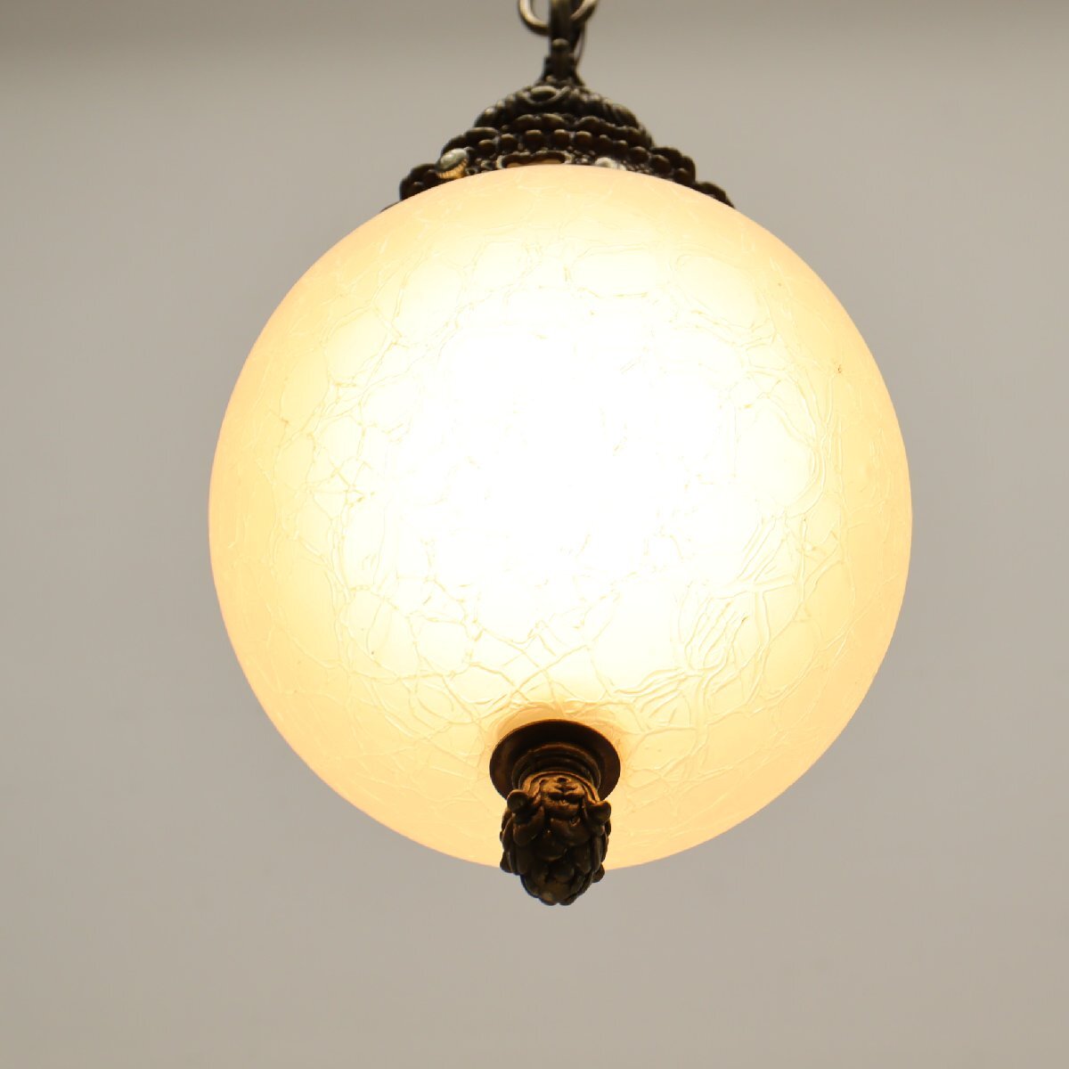 ヴィンテージ カスリガラス ペンダントランプ/アンティーク クラック模様 ヒビ加工 吊り下げランプ 照明#705-20-68-408