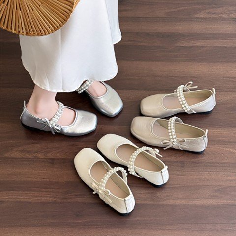レディース ストラップ パンプス スクエアトゥ 2cm ヒール 履きやすい 22.5cm(35) シルバー