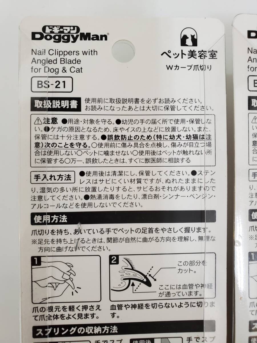 【新品 未开封 ペット美容室 爪切り 2个セット】 BS-21/Wカーブ爪切り/ラバーグリップ/抗菌/DoggyMan ドギーマン