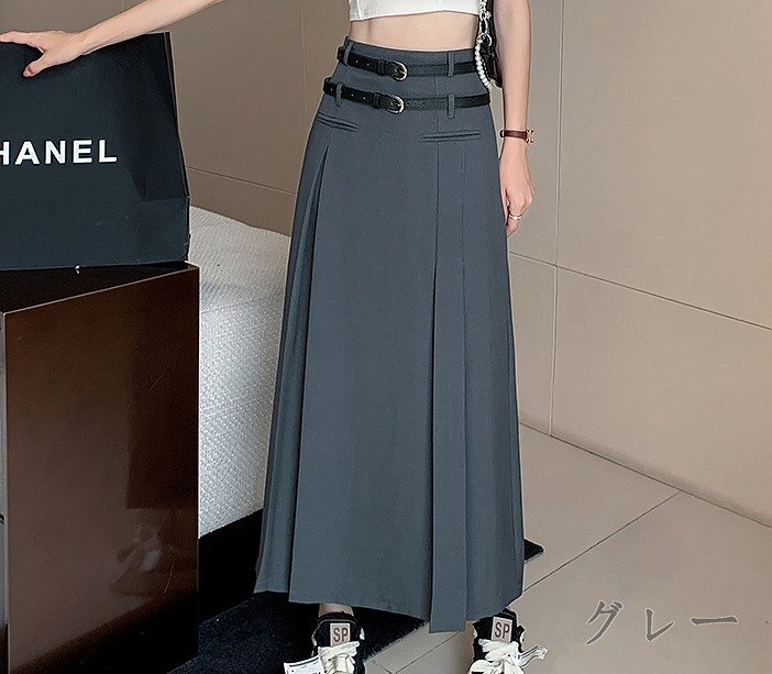 全3色 スカート ハイウエスト フリル 切り替え スリム 着痩せ sweet系 XL ベージュ