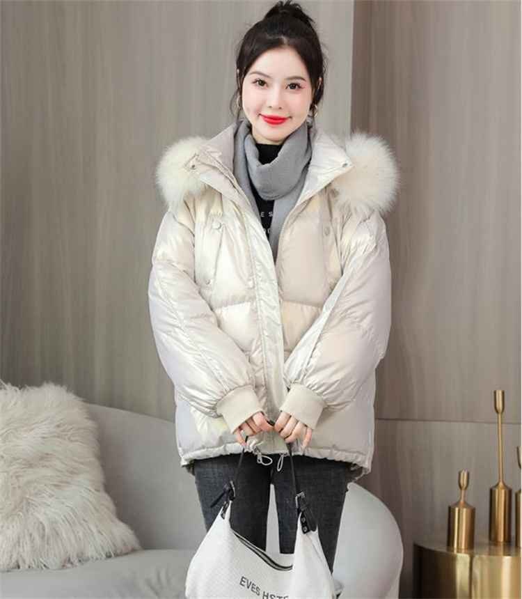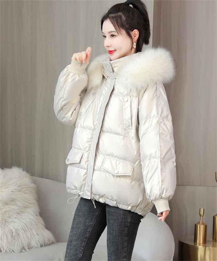 中绵ジャケット ショート丈 コート ファー ダウンジャケット 秋冬 レディース L シャンパン