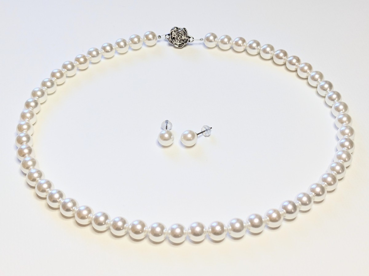 【限界市场】シェルパール★ホワイト★8mm★长さ37.41.45cm选択可能★ネックレス★ピアスorイヤリング付★送料无料★