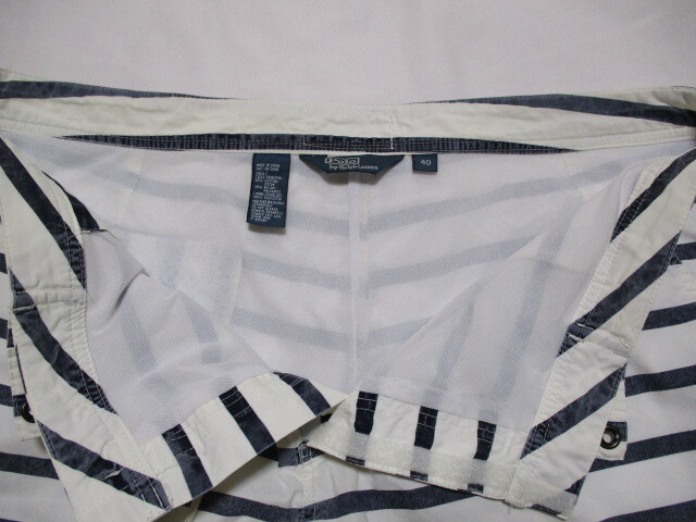 POLO ポロラルフローレン US RL NAVAL ボーダー スイム ショートパンツ W40 白×绀�
