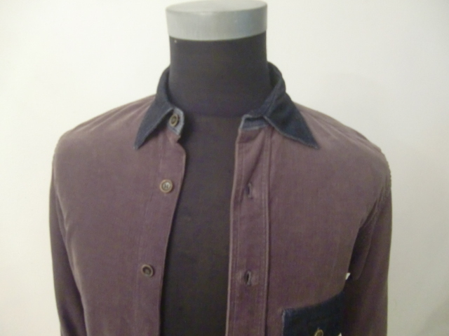 送料无料 フランス制 Bleu de Paname コーデュロイ デニム シャツ ワーク ブルードゥパナム GARCONS ミリタリー コム デ ギャルソン S 茶