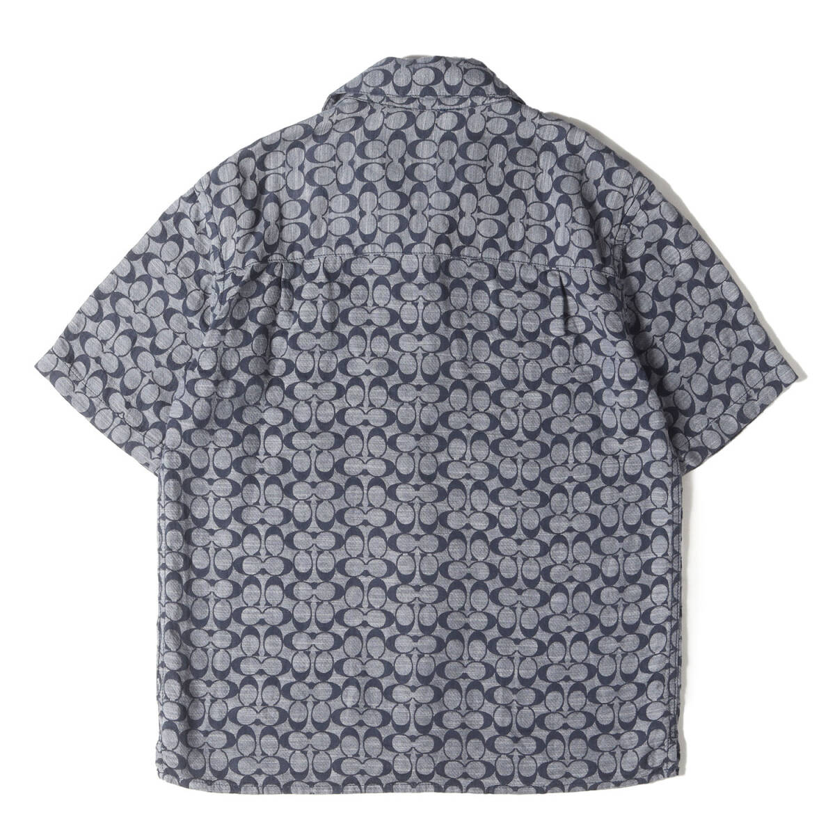 【美品】COACH コーチ シャツ ネイビー 绀 サイズ:S | モノグラム ガーゼ オープンカラー 半袖シャツ | ブランド カジュアルシャツ