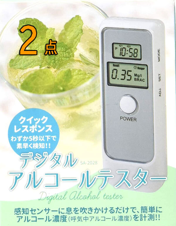 送料300円(税込)■lr170■アルコール検知器 デジタルアルコールテスター ホワイト SA-2028 2点【シンオク】