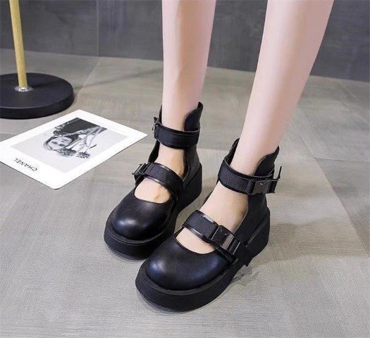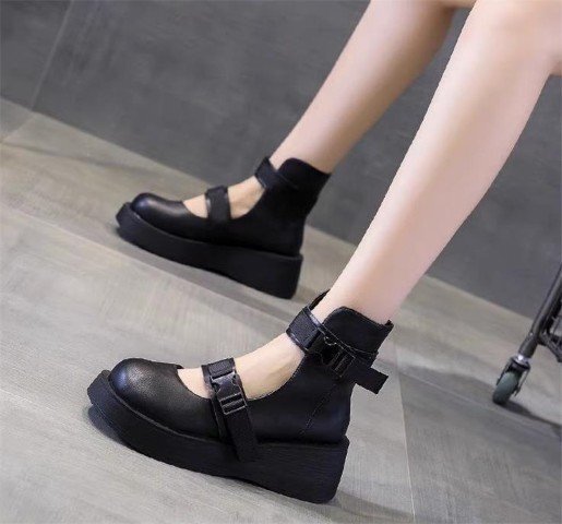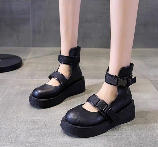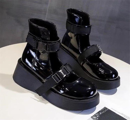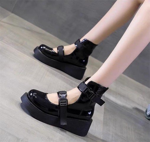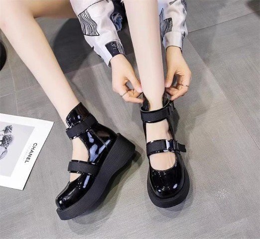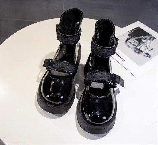 靴 ブーツ 厚底の小さい革靴 快适である 纽サンダル 【35】22.5cm エナメルブラック