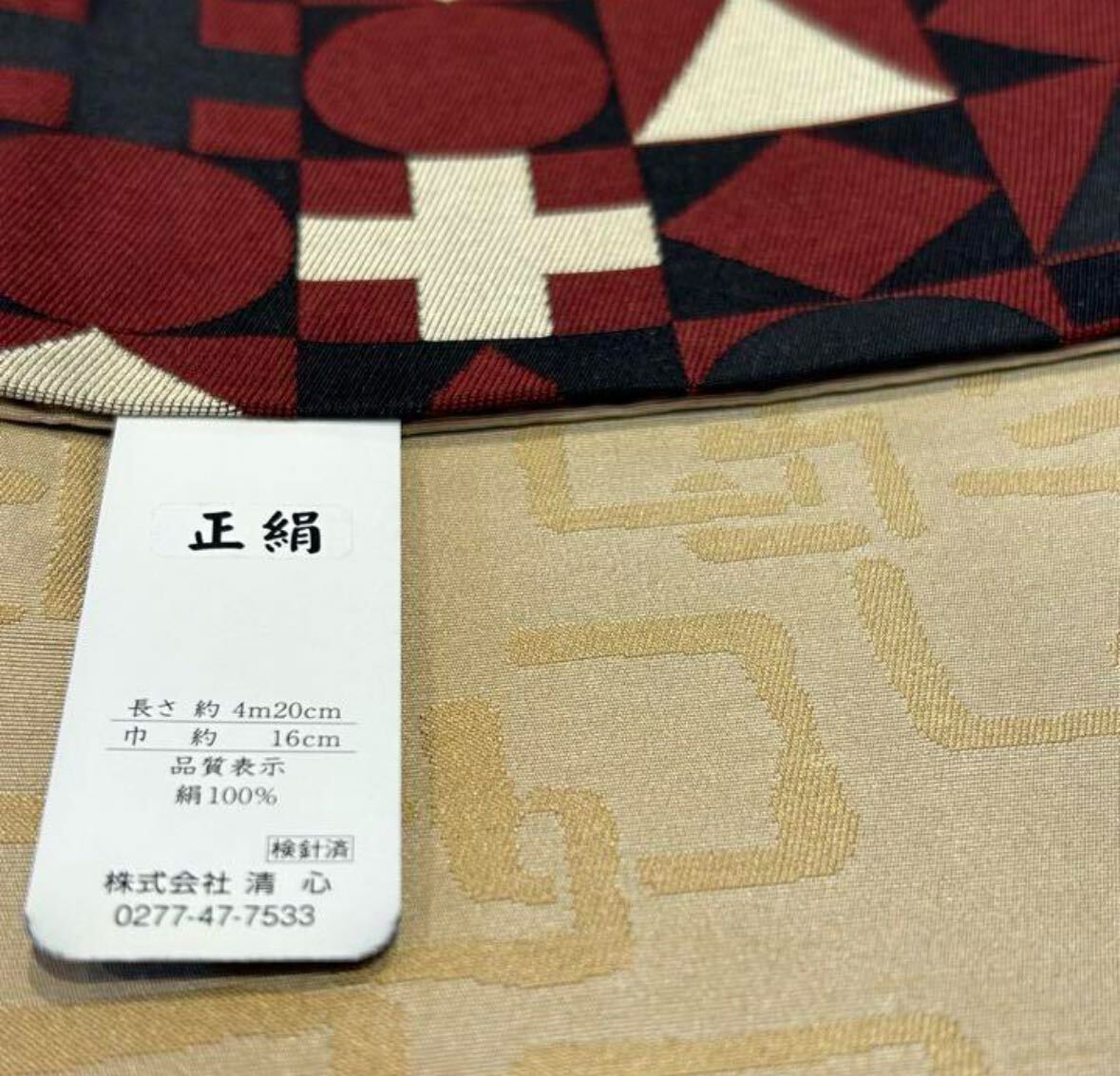 【新品未使用】おりびと正绢半幅帯 丸三角四角 个性的 お洒落