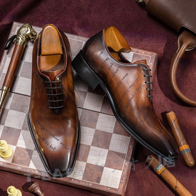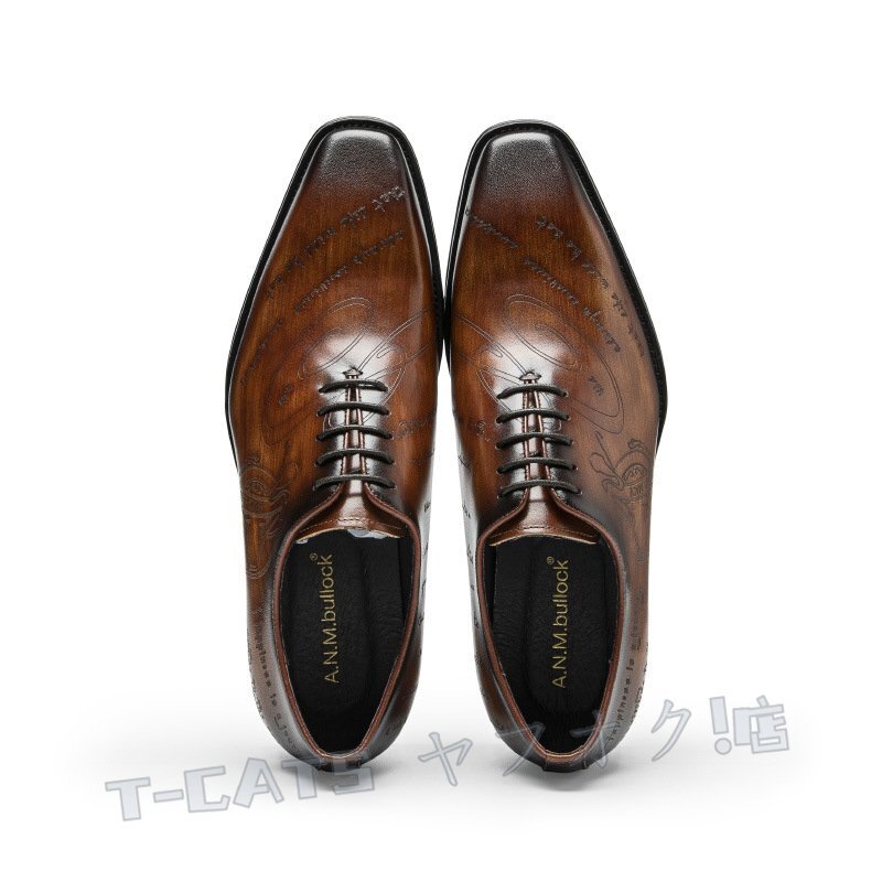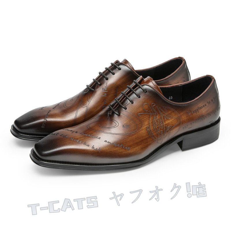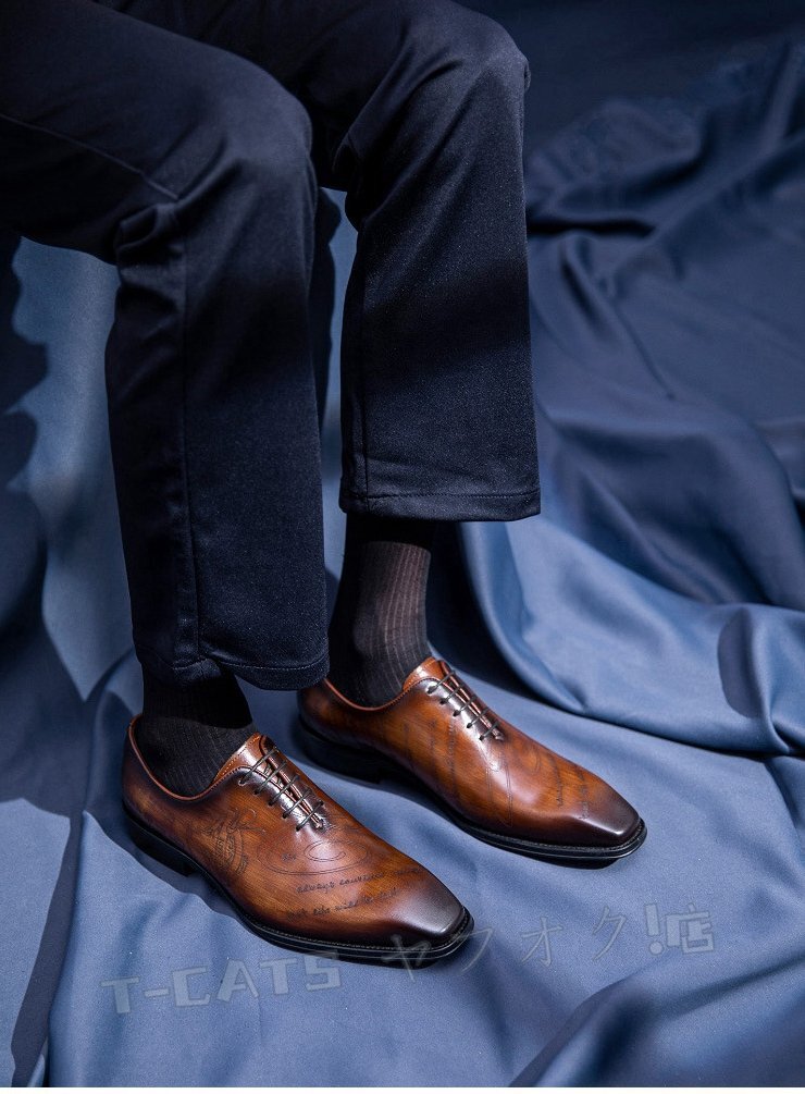 ☆新品ビジネスシューズ メンズ 职人手作り 彫り 本革 レザーシューズ フォーマル 结婚式 革靴 牛革绅士靴 ブラウン24~27cm