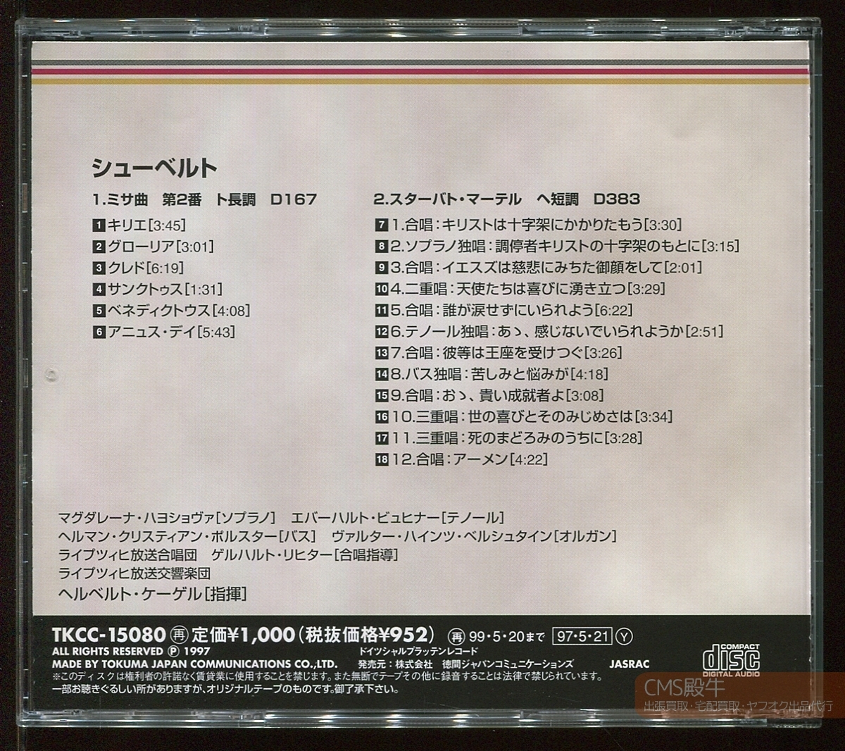 CMS2509-174>日本语対訳付┃ケーゲル&ライプツィヒ放送响/シューベルト:ミサ曲 第2番&スターバト・マーテル 1986年録音