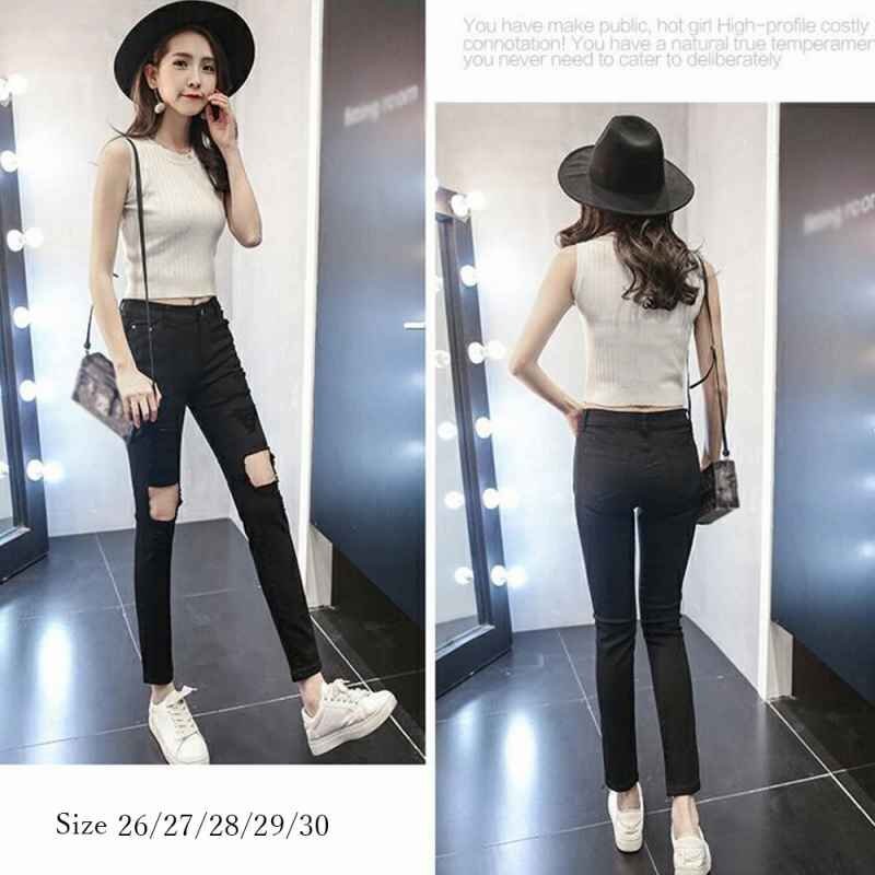 デニム スキニー レディース デニムパンツ ダメージ入り ジーンズ 26 ブラック