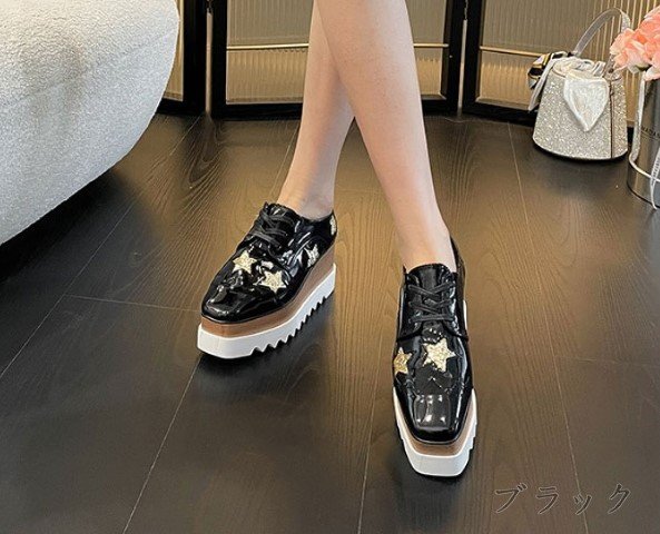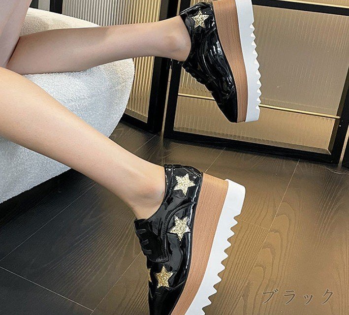 【高品质】スリッポン ローファー モカシン 厚底靴 プラットフォーム 厚底 シンプル 38 ブラック