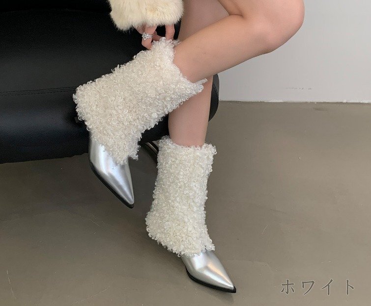 ブーツ ファー付き 切り替え シンプル 【35】22~22.5cm ホワイト