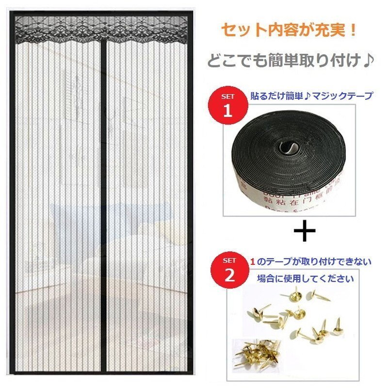 贴るだけ☆どこでも设置OK!网戸カーテン 100cm×210cm マグネット 蚊 害虫 マジックテープ 目隠し 虫よけ ネット I-037