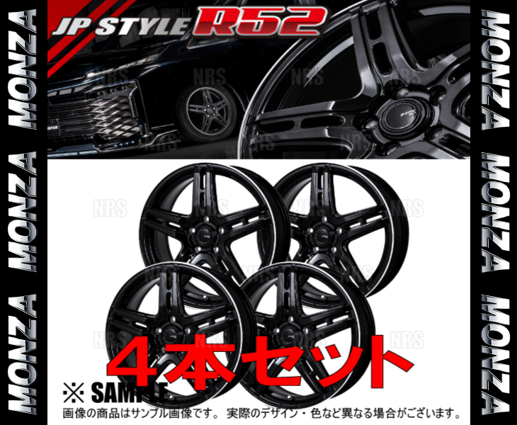 MONZA モンツァ JP STYLE R52 (4本セット) 4.00B x 12 インセット+42 PCD100 4穴 パールブラック/Fカットポリッシュ (R52-401242-BP-4S