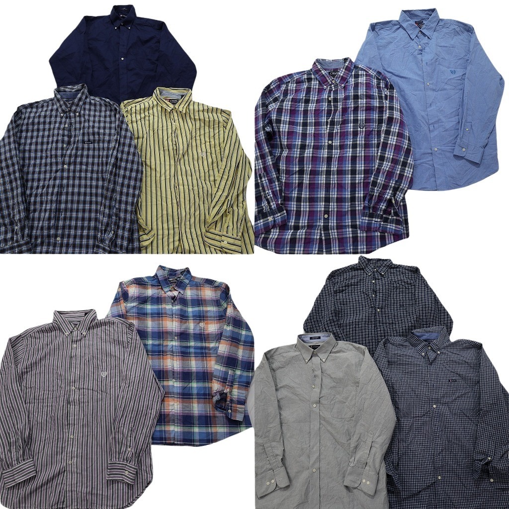 古着卸 まとめ売り チャップス CHAPS 长袖シャツ 10枚セット (メンズ L ) チェック 无地 ストライプ ボタンダウン NB8161 1円スタート
