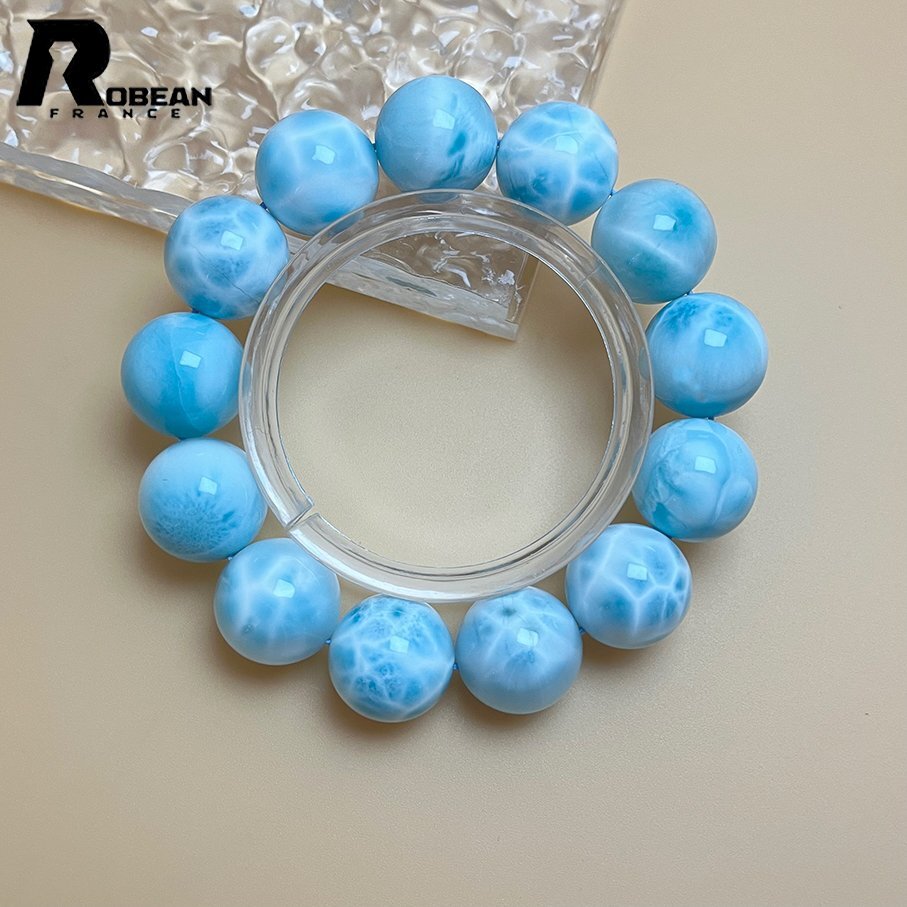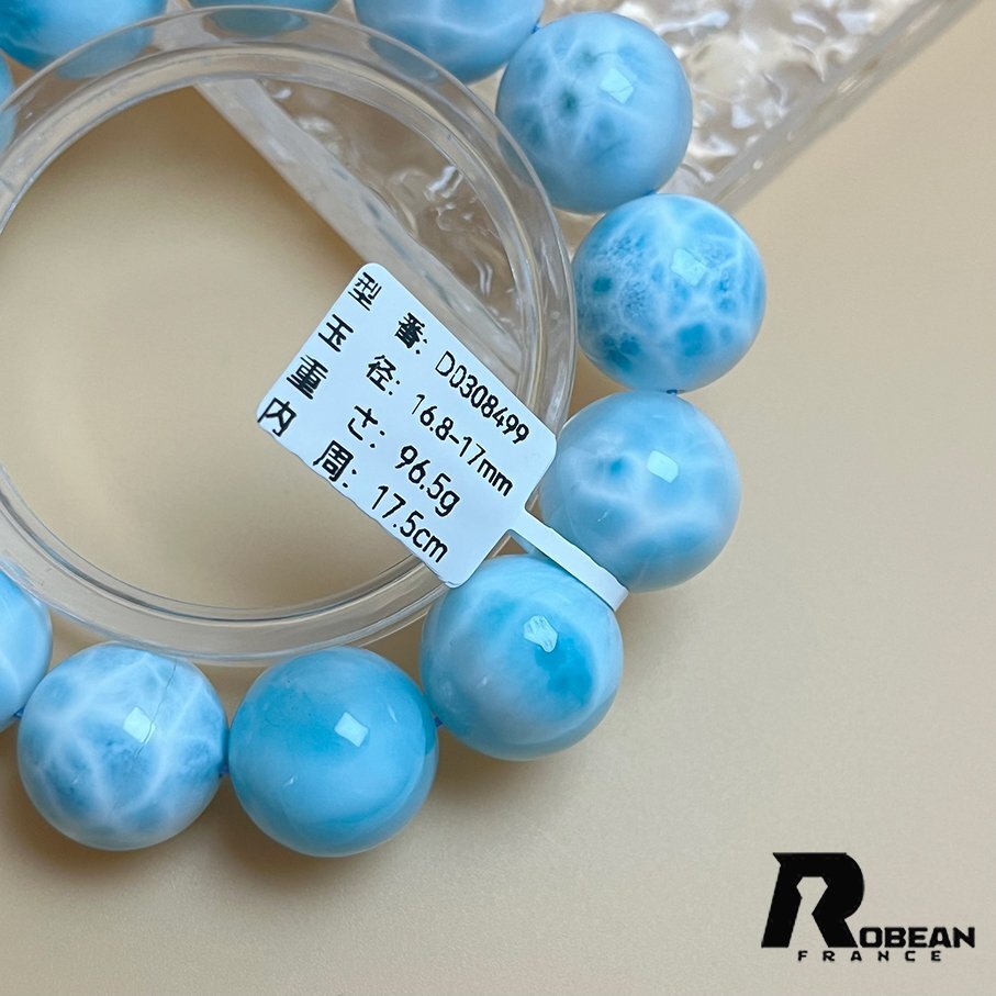 絶賛 EU制 定価162万円★ROBEAN・ドミニカ共和国産のラリマー★パワーストーン ブレスレット 天然石 开运 金运 绮丽 约16.8-17mm D0308499