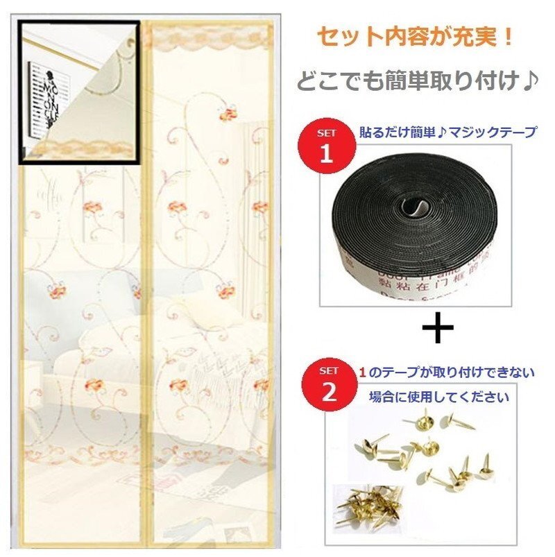 贴るだけ☆どこでも设置OK!网戸カーテン 70cm×200cm マグネット 蚊 害虫 マジックテープ 目隠し 虫よけ ネット I-045