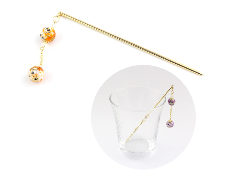 【ゆうパケット送料250円】【オリジナル】かんざし/和柄ビーズ スティック お箸かんざし 簪 1本かんざし 和风 s81☆紫