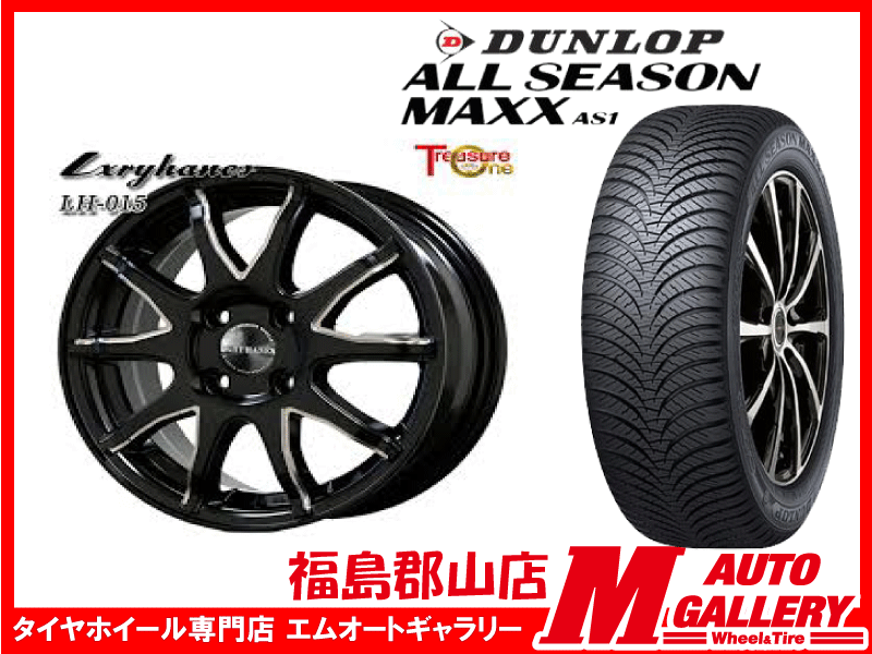 郡山店★オールシーズンタイヤホイールSET★ラグジーヘインズ LH015 BSM 15インチ 5.5J 4H100+43&DL オールシーズンMAXX AS1 195/65R15 91H