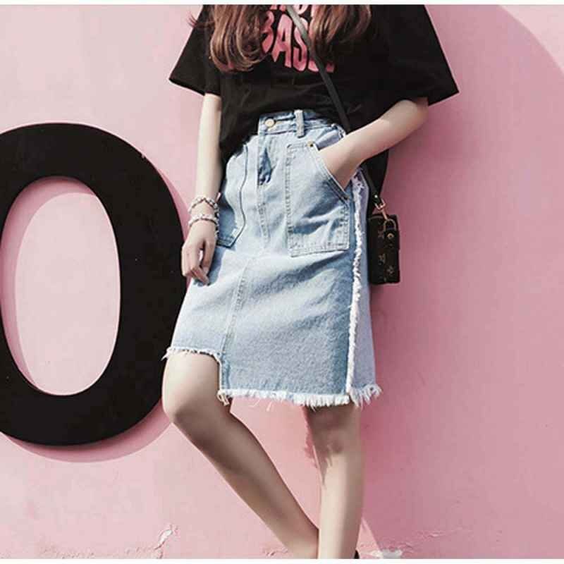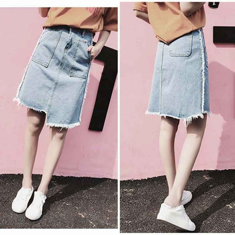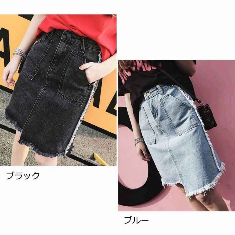 デニムスカート 膝丈 不规则 スカート レディース ハイウエスト 半身スカート XL ブラック