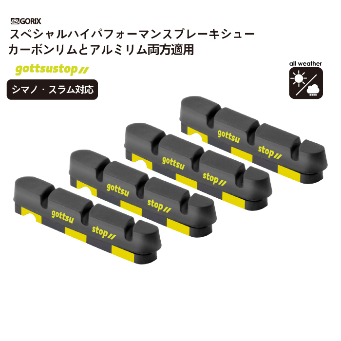 GORIX gottsustop ハイパフォーマンスブレーキシュー(ブラックxイエロー) シマノ・スラム対応 前后1セット(计4个)入り 船无し