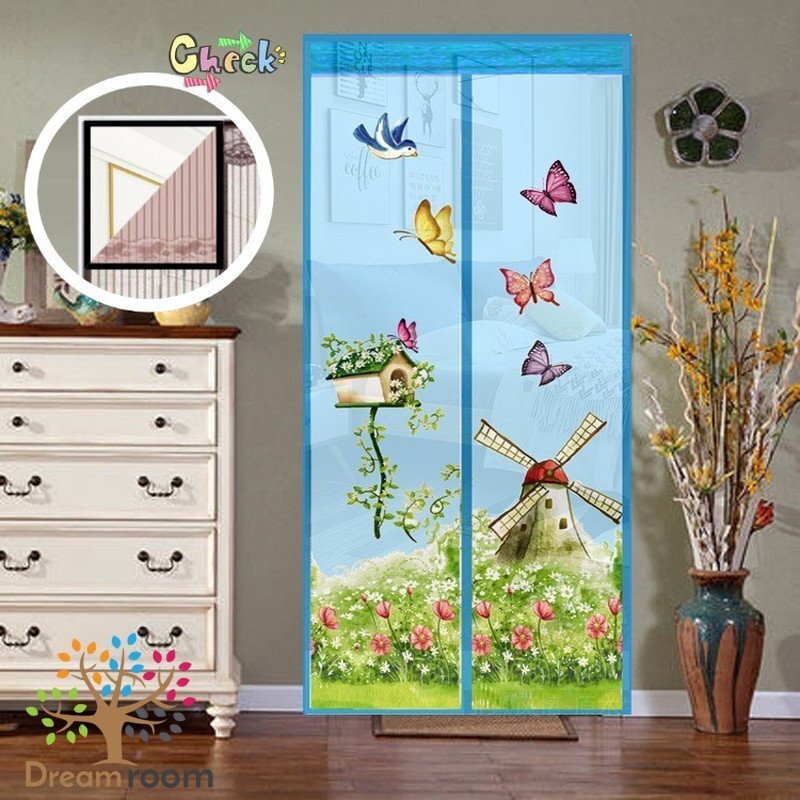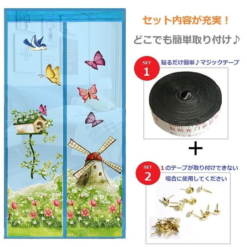 贴るだけ☆どこでも设置OK!网戸カーテン 150cm×220cm マグネット 蚊 害虫 マジックテープ 目隠し 虫よけ ネット I-040