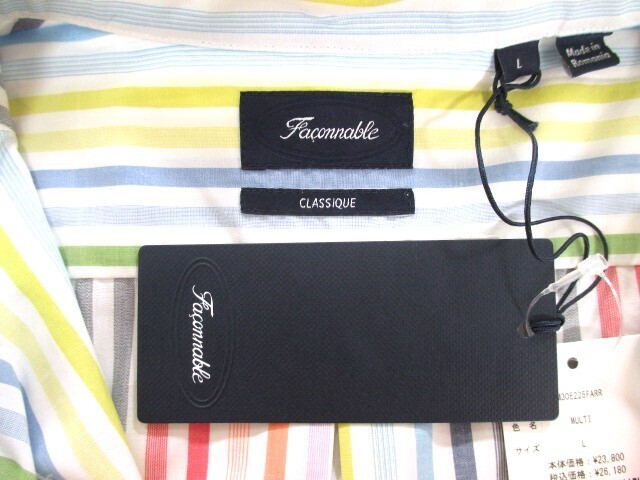 新品★Faconnable 长袖 カラフルストライプシャツ Lサイズ★定価26180円 ルーマニア制 白 ファソナブル ファッソナブル メンズ