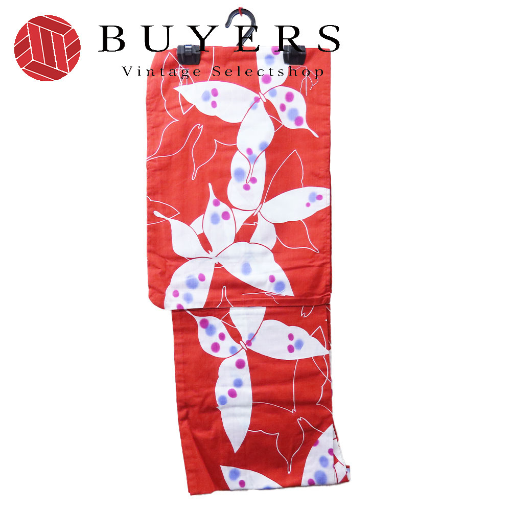 中古 浴衣 未使用展示品 绵 赤 白 ピンク 紫 蝶 水玉 可爱い 和装 呉服 和服 きもの レディース 女性