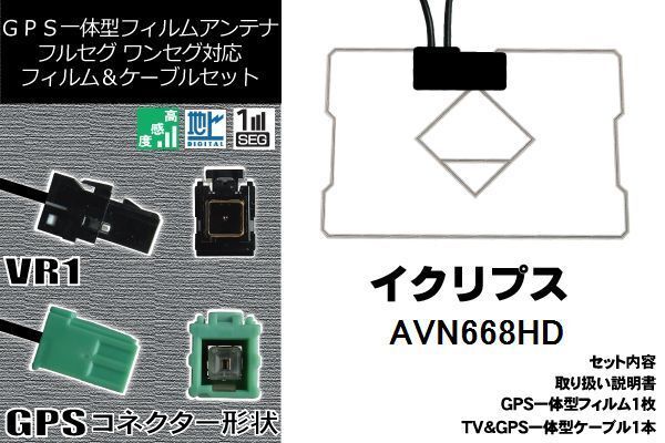 GPS一体型フィルム & GPS一体型ケーブルアンテナ イクリプス ECLIPSE 用 AVN668HD 地デジ ワンセグ フルセグ ナビ