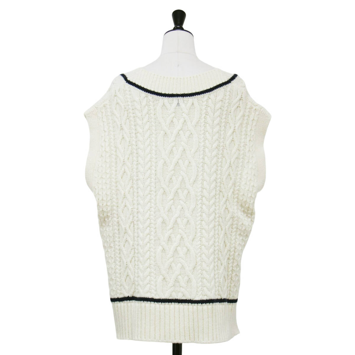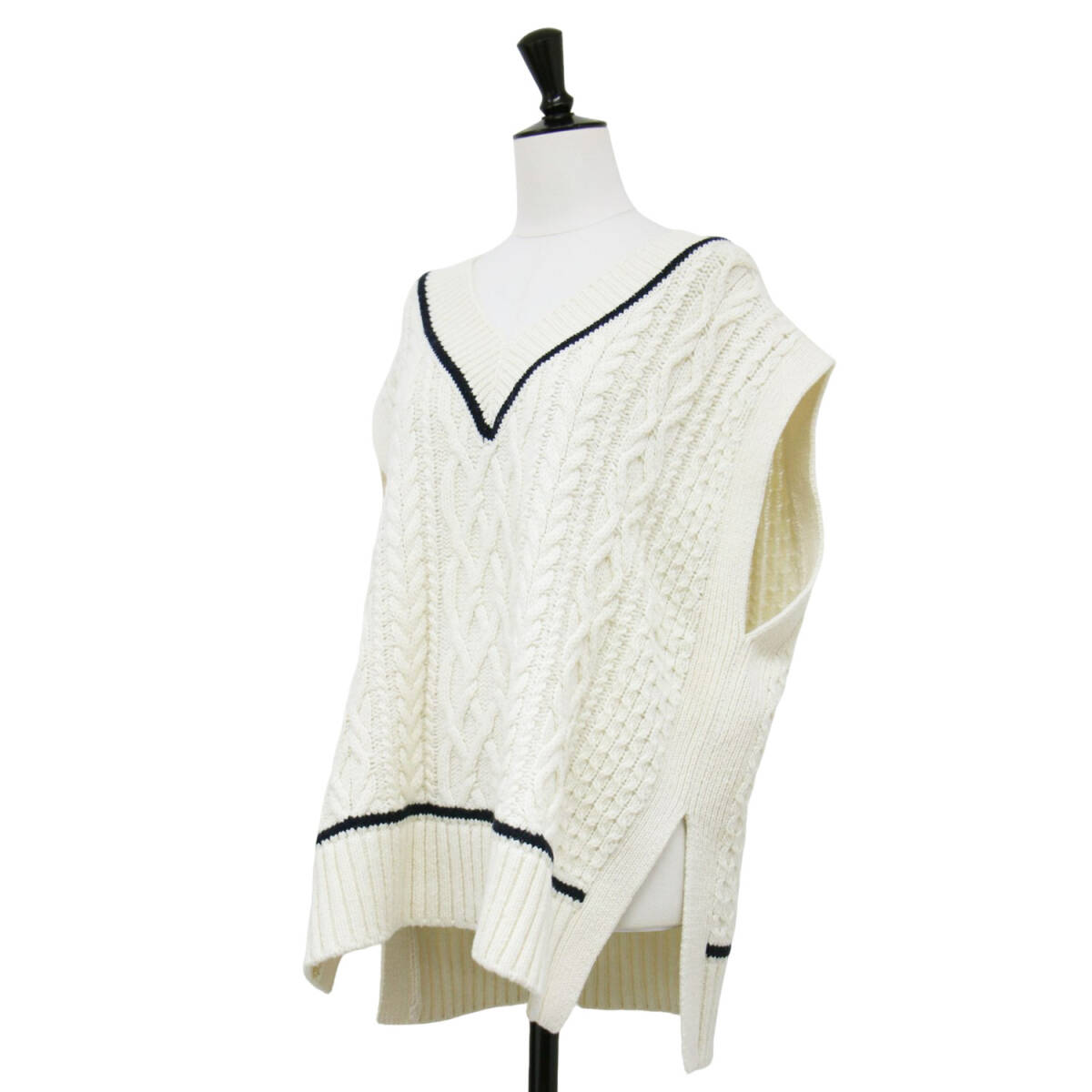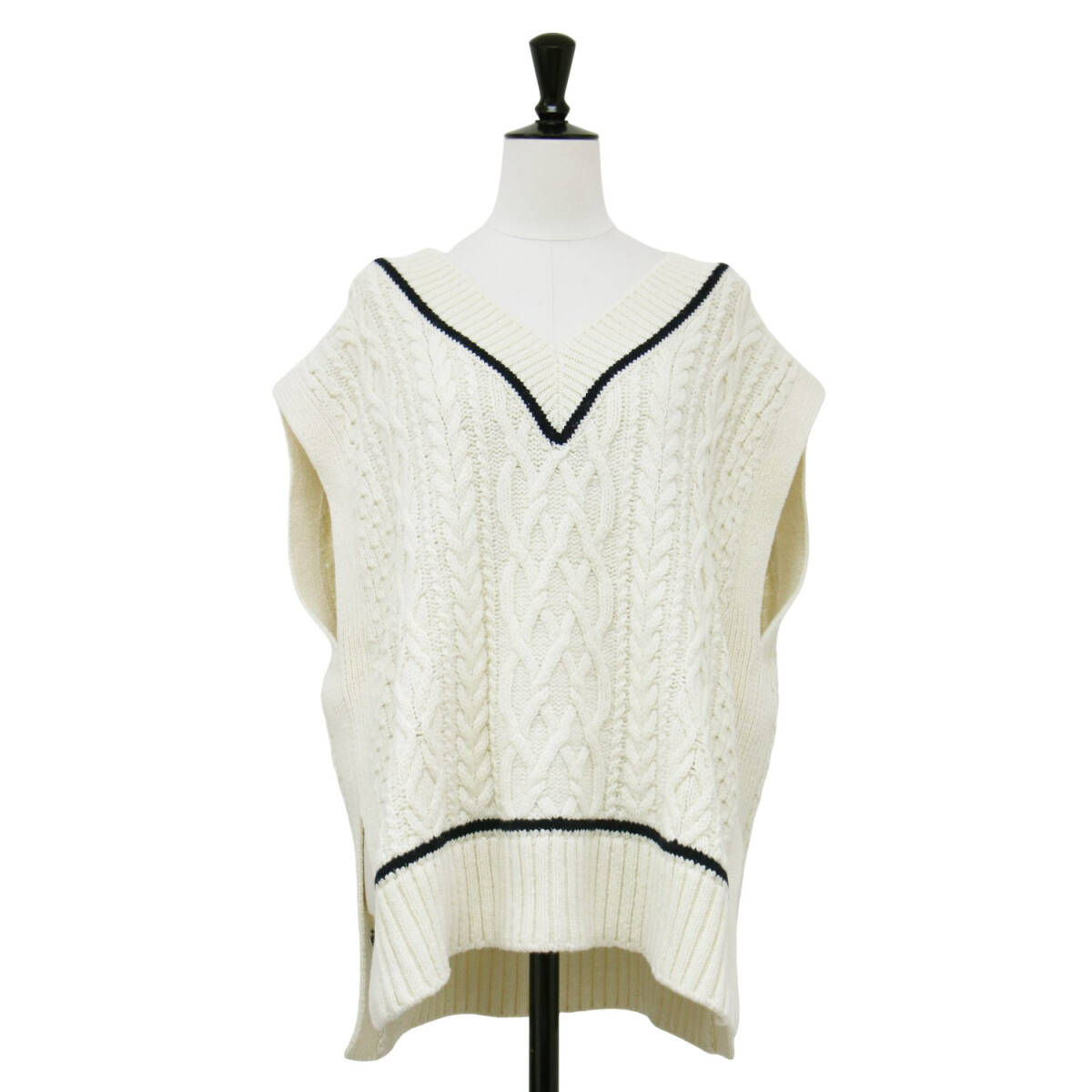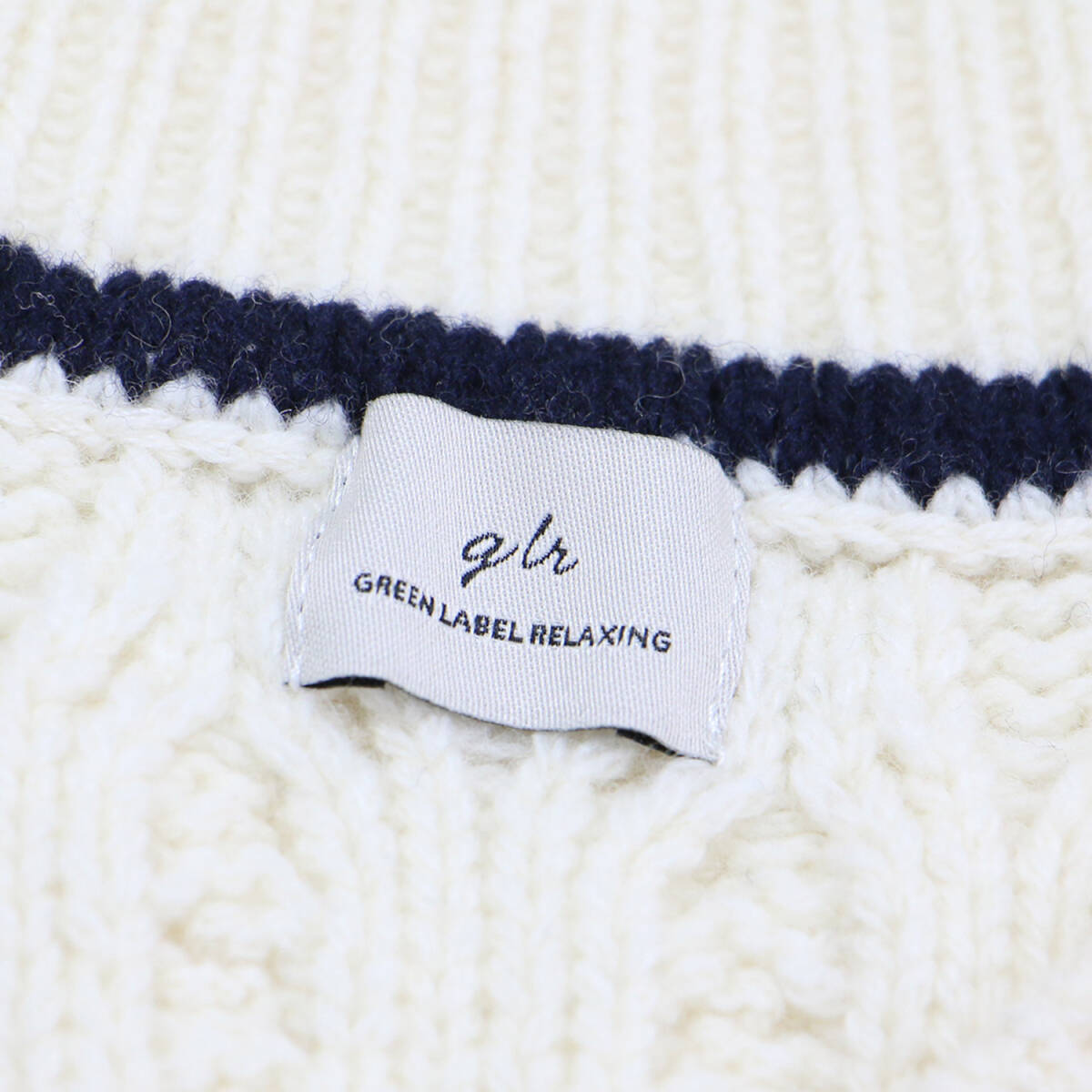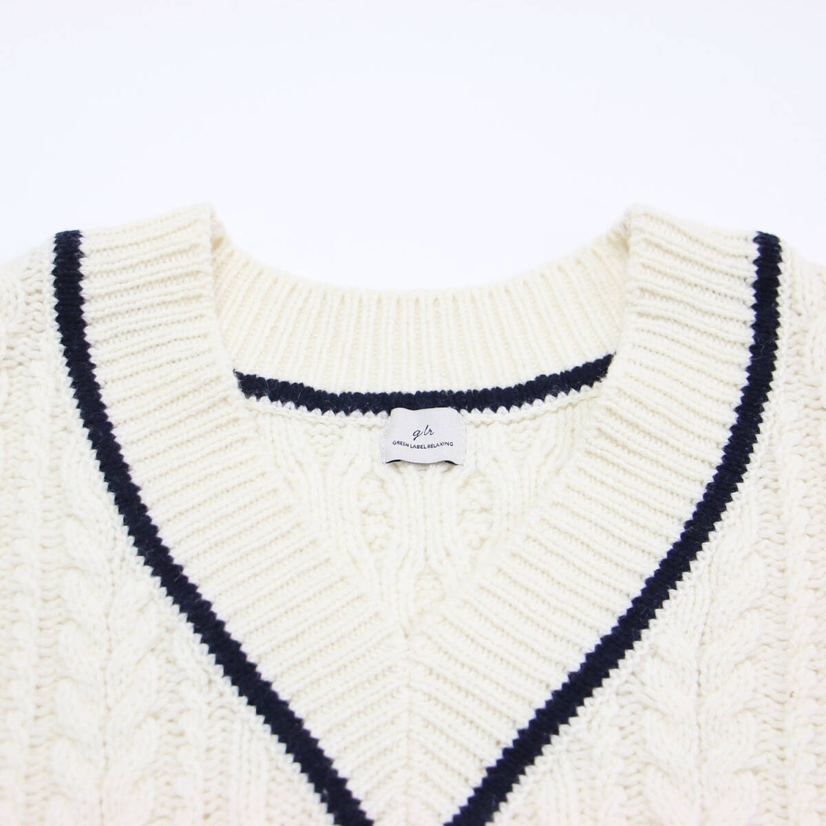 green label relaxing グリーンレーベル リラクシング ベスト オフホワイト ネイビー 白绀 サイズ:FREE | アラン Vネック ニット ベスト