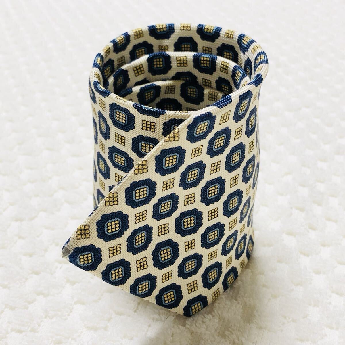 ■美品■Burberrys バーバリー ネクタイ ジュエリー 総柄 シルク100% アイボリー×ブルー×イエロー ビジネシ�