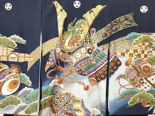 平和屋着物[]お宫参り 男の子 祝着 産着 初着 のしめ 龙 兜 打ち出の小槌 扇面笹松文 晕し染め 金彩 逸品 DAAS9091ma