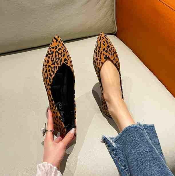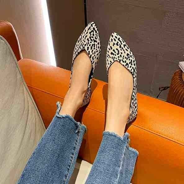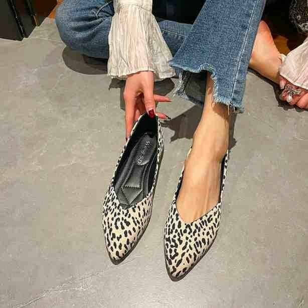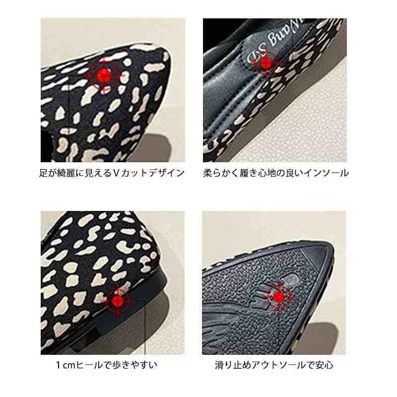 トレンド パンプス レオパード柄 ヒョウ柄 Vカット ローヒール 耐摩耗性 ソフト 40 ブラウン