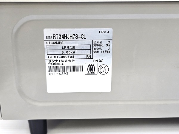 【中古品】 リンナイ Rinnai ガスコンロ LPガス(プロパンガス) 左强火力 水无片面焼グリル RT34NJH7S 2019年制 〇YR-19217〇