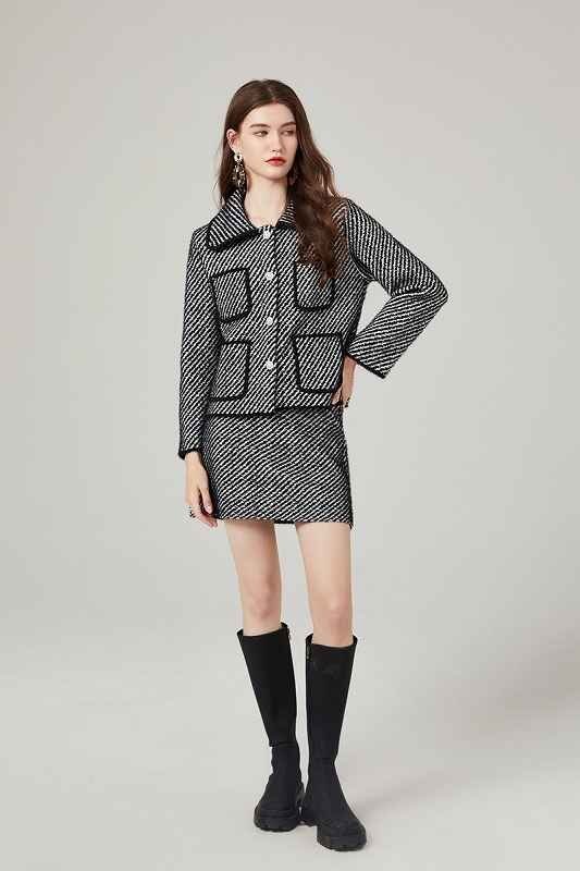 上下セット 2点セット 长袖ジャケット+ミニスカート かわいい セットアップ 秋冬 S ブラック