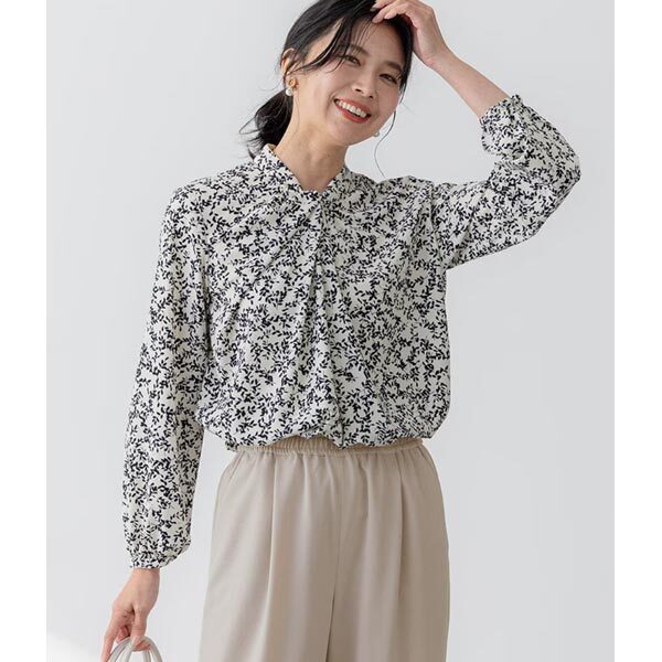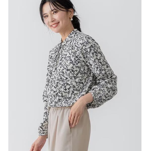 23区【洗える】シャドーリーフ プリント ブラウス 白系(38・Mサイズ)新品