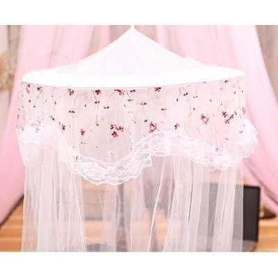 送料无料 フラワー天盖 蚊帐 シングル / スリーピングカーテン モスキートネット ホワイト ピンク 蔷薇 プリンセスベット レース
