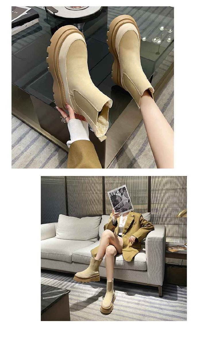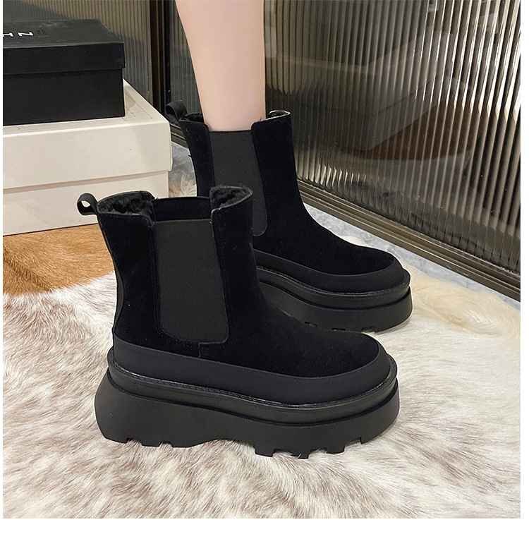 ブーツ ショート 里ボア 美脚 脚长 サイドゴア 里起毛 滑り止め 厚底 5cm 36 黒(里起毛)