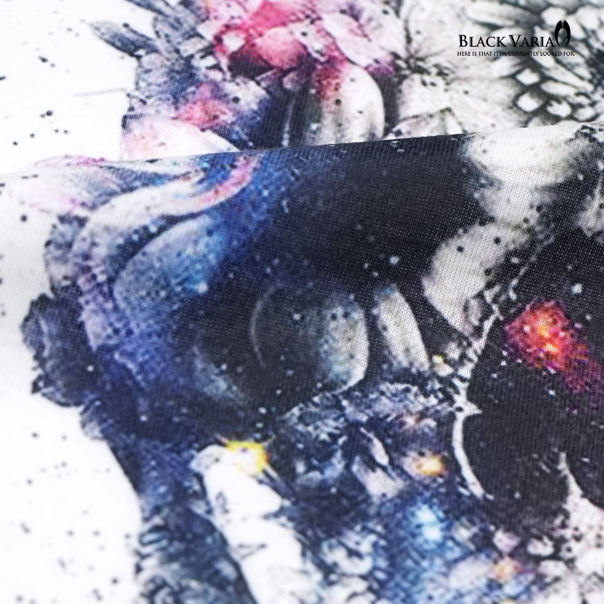 35363-s01 Tシャツ スカル ドクロ 髑髅 Vネック スリム 半袖Tシャツ プリント ユニセックス(ホワイト白スカルフラワー) L 送料370円~