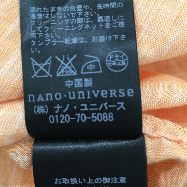 2303F-076 メンズ NANO UNIVERSE ナノユニバース オレンジ シャツ S 【送料一律!800円】
