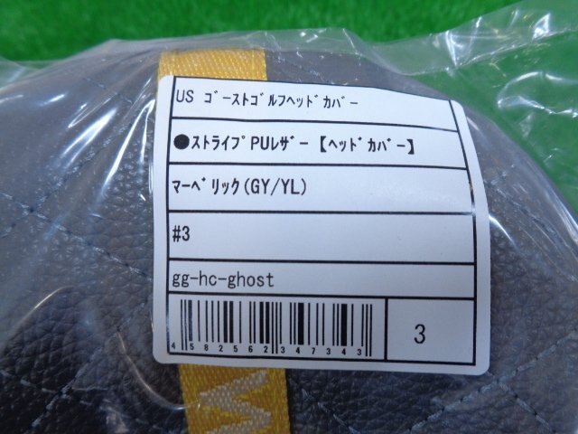 GK栄三越■ 718 【新品】◆GHOST◆ゴースト◆グレー×イエロー◆マーベリック◆3W用◆フェアウェイウッド用ヘッドカバー◆ストライプ◆