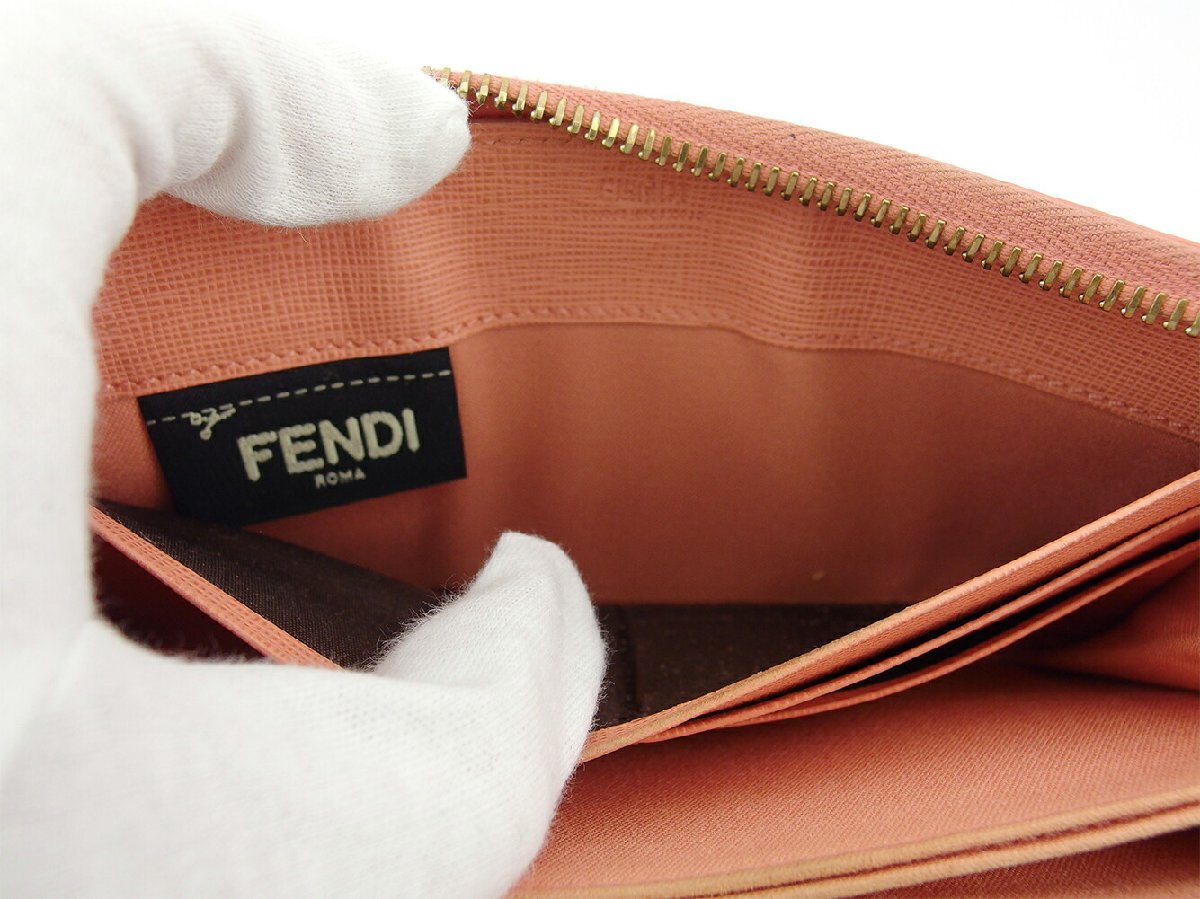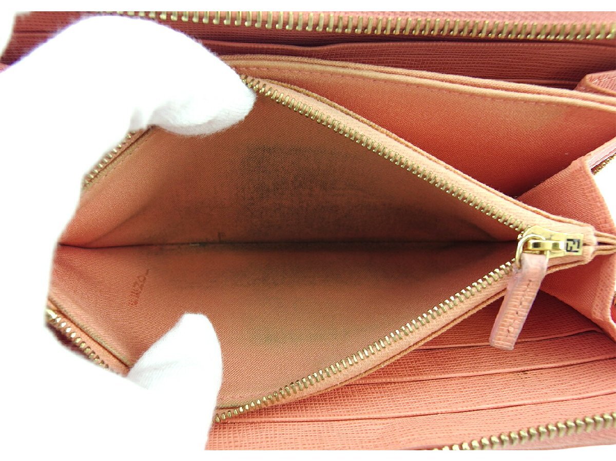フェンディ FENDI 长财布 ロゴプレート ピンク ゴールド レディース 中古