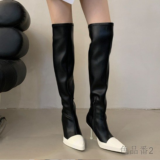 ブーツ とんがりトゥ ピンヒール 切り替え シンプル 【38】23.5~24cm ロングブラック