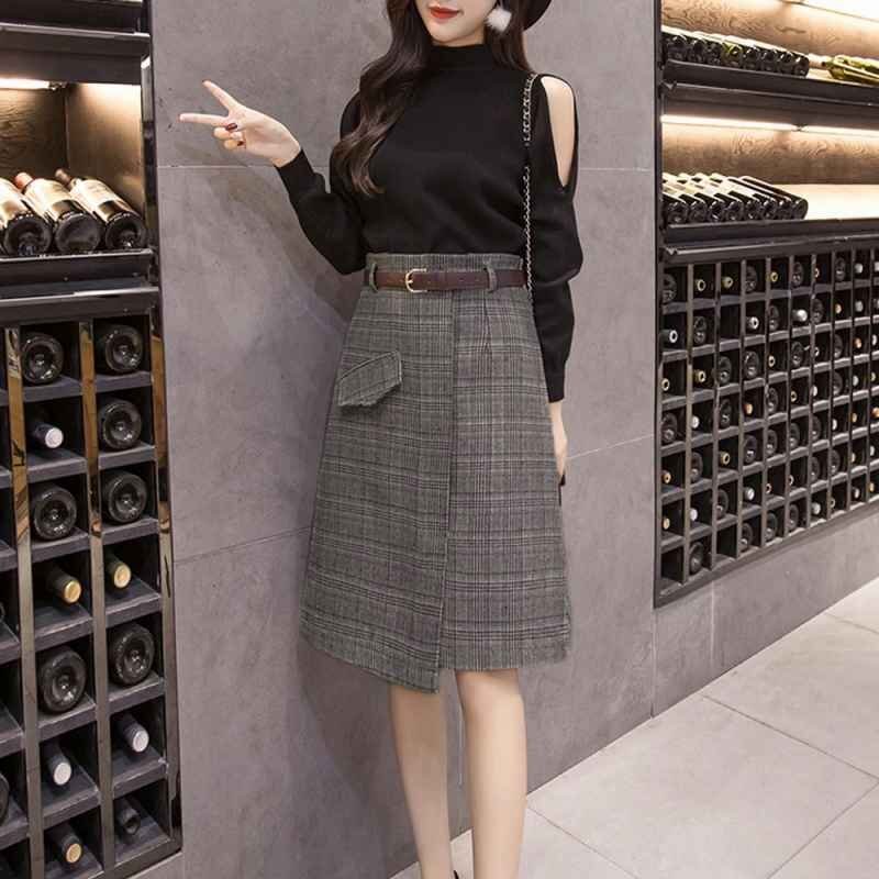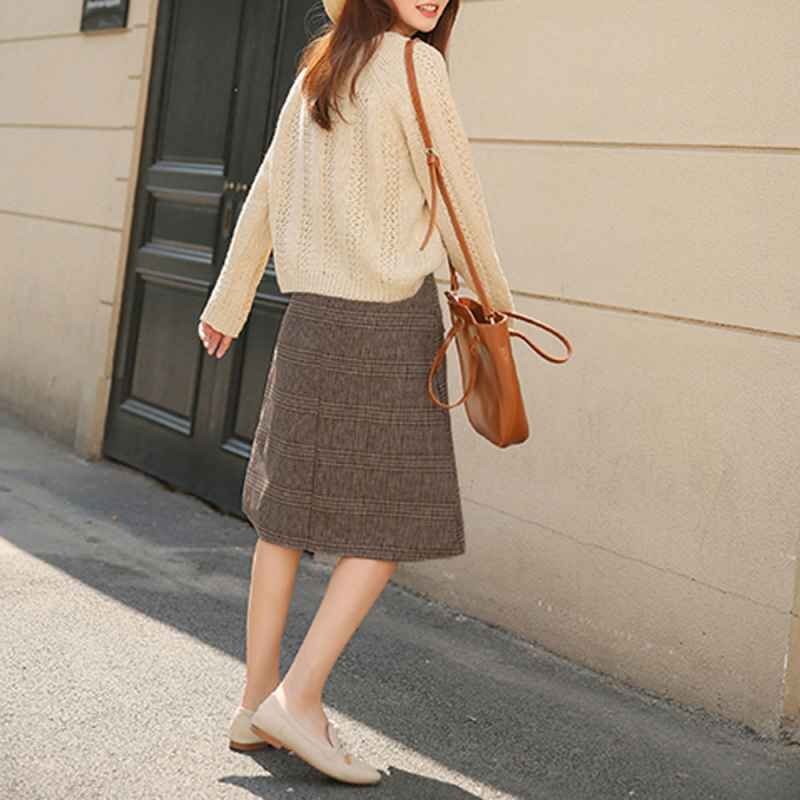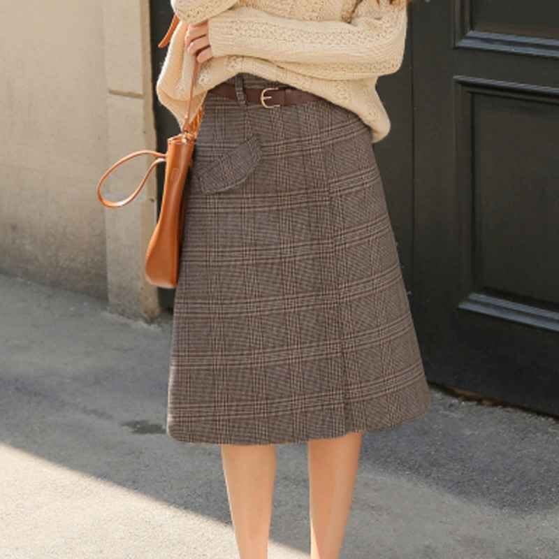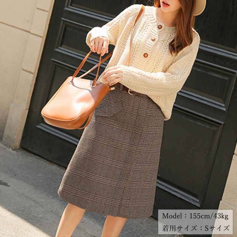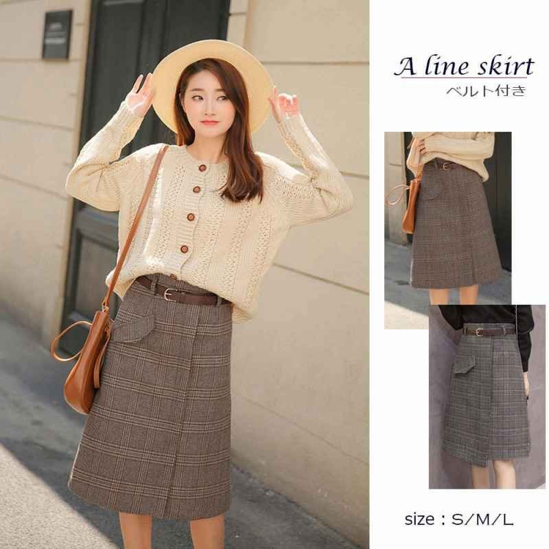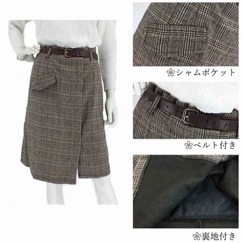 ミモレ丈 スカート レディース グレンチェック スカート ハイウエスト M グレー