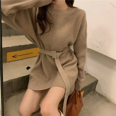 ミニワンピース ショート丈ワンピース ニット セーター 长袖 シンプル カジュアル セクシー レディース フリー オフホワイト