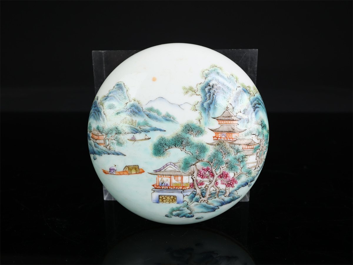 【志】A276 唐物 【大新干隆年制】 粉彩山水人物纹 盖物 香合/美品 】#