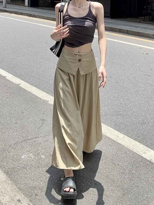 スカート ハイウエスト フリル 切り替え スリム 着痩せ シンプル M ベージュ