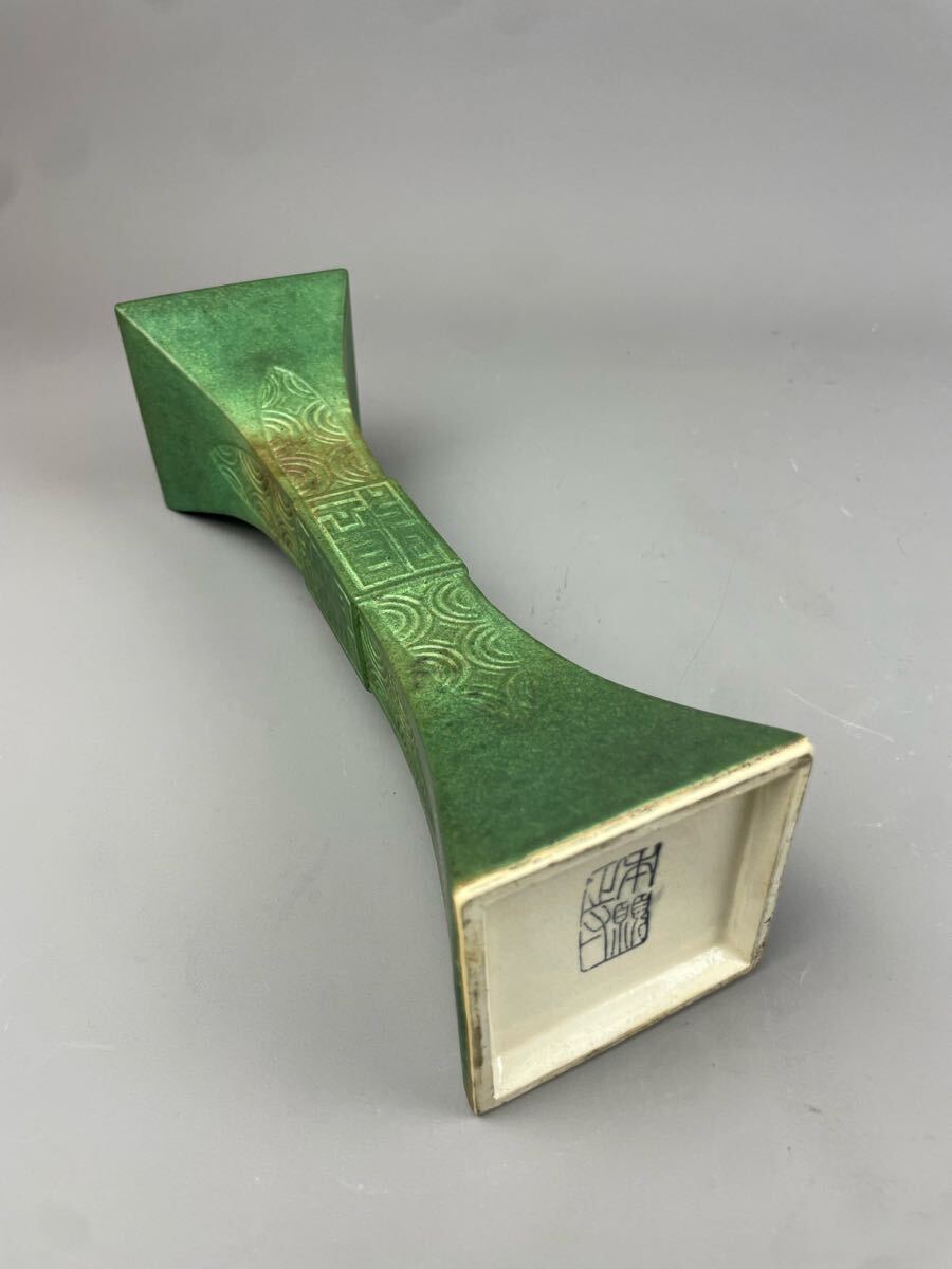 旧家蔵出し アンティーク 朝鲜美术 中国美术 时代物 花入 花瓶 高さ约28cm 花器 唐物 古美术 置物 陶器 緑